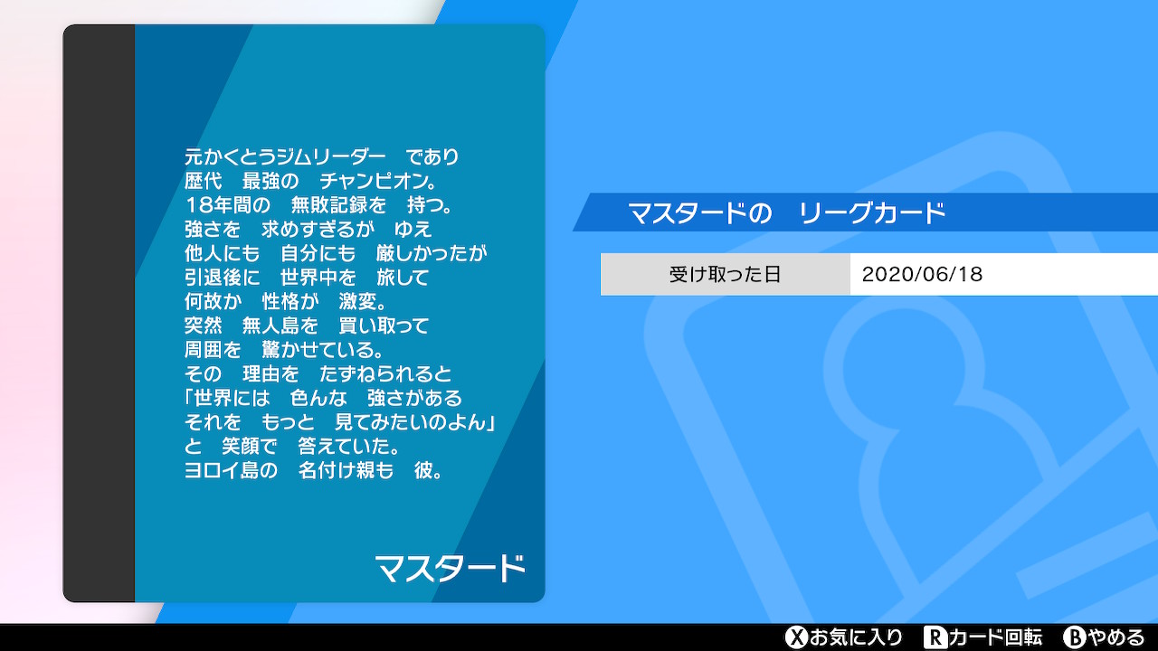 ポケモン どうじょうのぬしのマスタードさん リーグカードの内容が