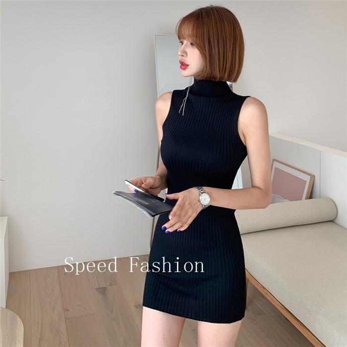ノースリーブニットミニワンピース セクシースリムフィット