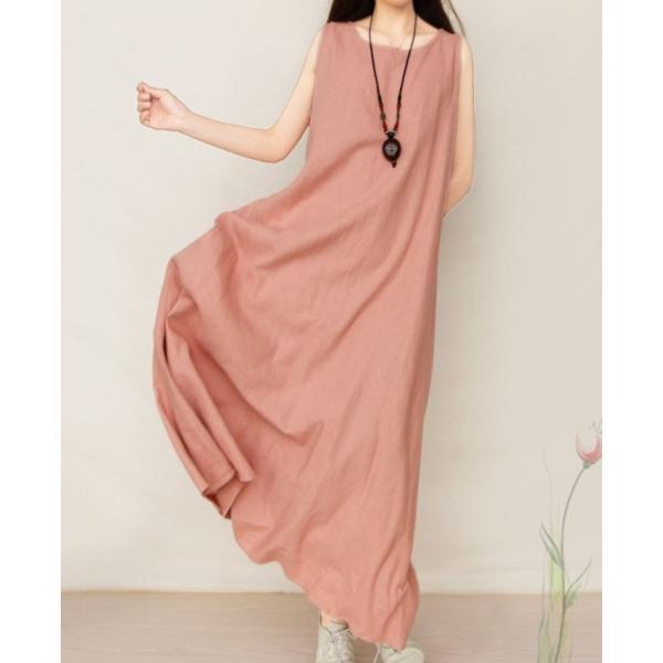 リネン ワンピース マキシ丈 ノースリーブ ピンク 黒 白 Buyee
