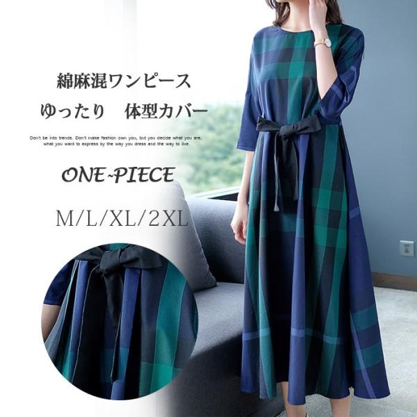 ロングワンピース チェック レディース ワンピース きれいめ 40代