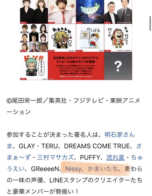 さんま かまいたちも One Pieceの Lineスタンプ企画に原作者含む著名