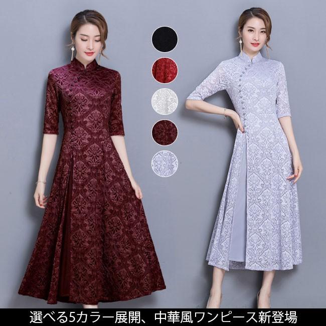楽天市場 2点送料無料 中国風復古刺繍ワンピース 優雅なチャイナ