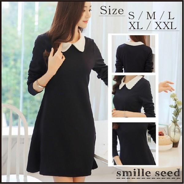 春 夏 レディース ワンピース ブラック 黒 ワンピース 半袖 襟付き A