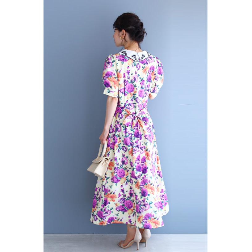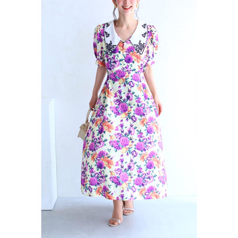 French Pave 華やかにエレガント 紫の薔薇ロングワンピース Ml対応