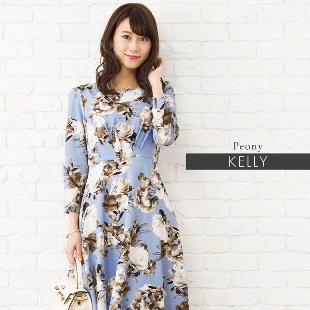ケリーフレアワンピ ピオニー サックスブルー スフレシリーズ