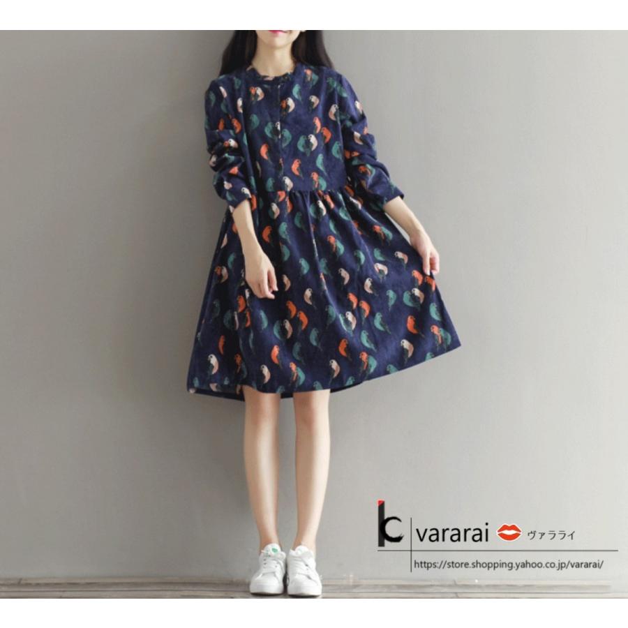 ワンピース マタニティ服 コーデュロイワンピース レディース 膝丈 鳥