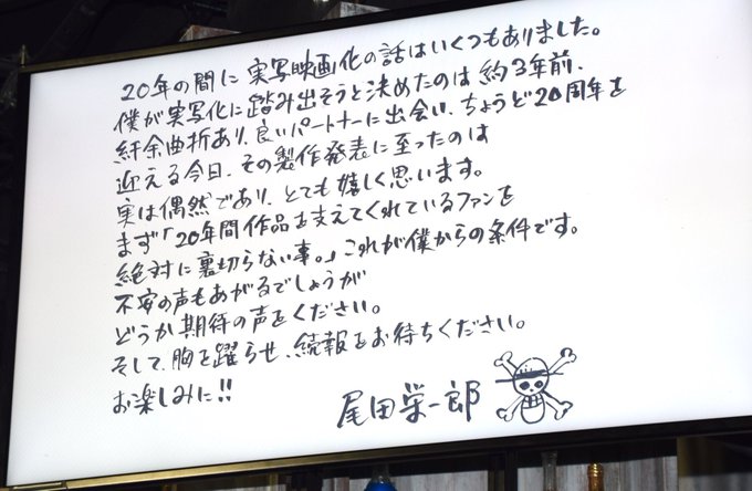 One Pieceの実写ドラマ化の発表 ここで銀魂の作者 空知先生と尾田