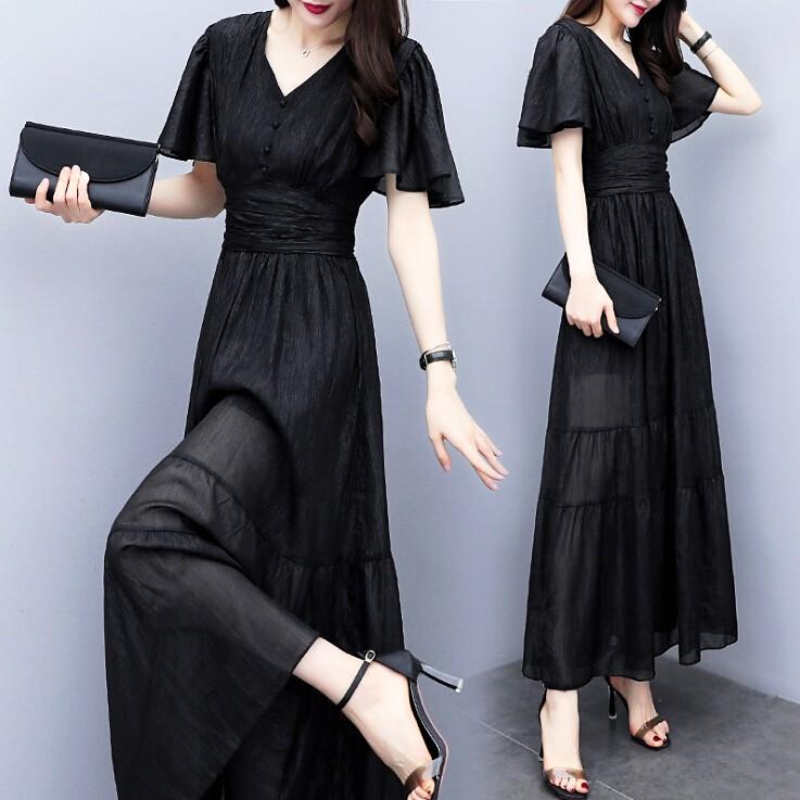 マキシワンピース ワンピース レディース オシャレ 黒ワンピース 夏 20