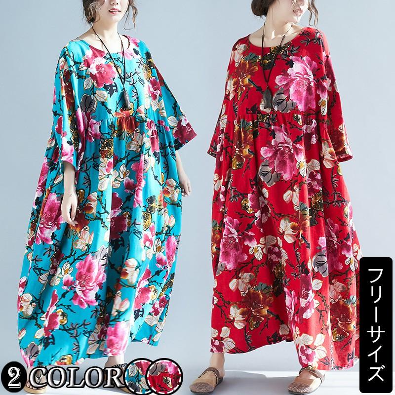 ロングワンピース ゆったり 40代 50代 夏 ワンピ マキシ丈 30代 体型